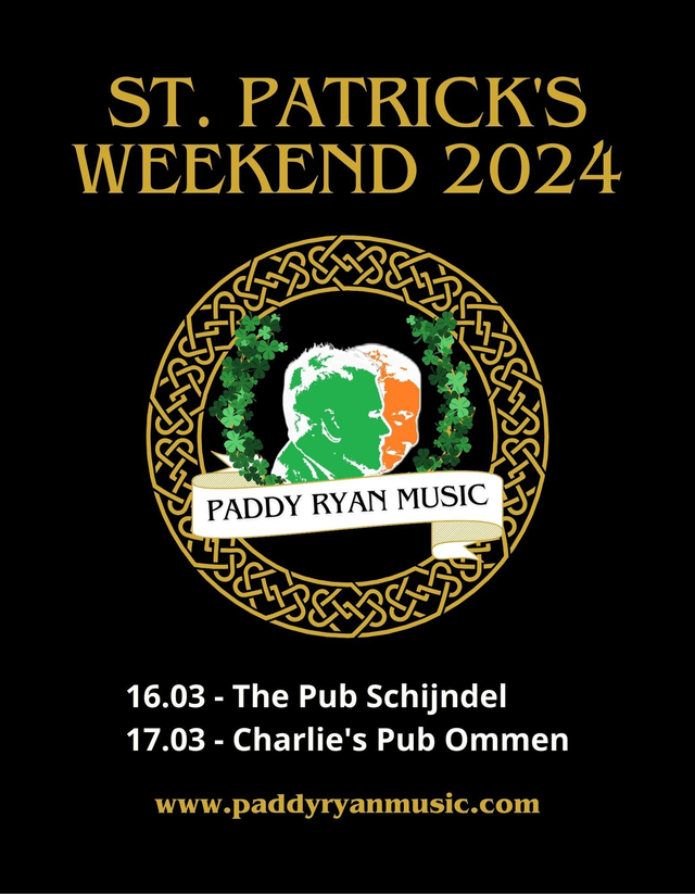 The official Paddy Ryan Music St Patrick's Day 2024 T-shirt as seen on stage by the band on St. Patrick's Weekend 2024.